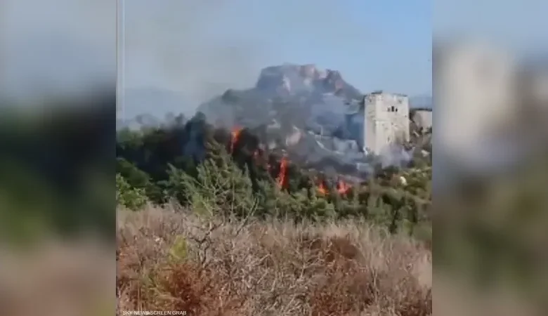 حريق في قلعة صلاح الدين الأثرية بريف اللاذقية